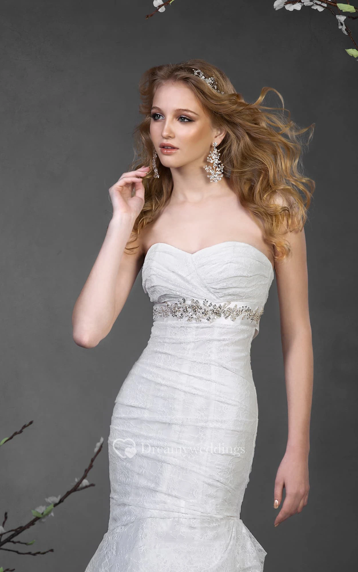 Mermaid Long Sweetheart Sleeveless Lace-Up Lace Dress With Beading And Draping