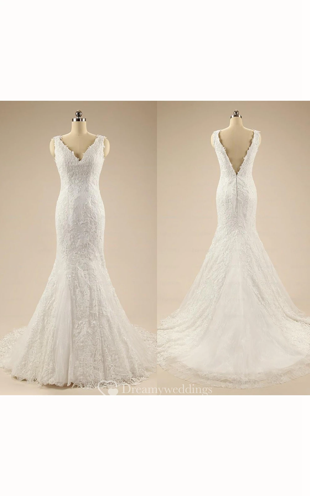 Mermaid Long V-Neck Court Train Backless Lace Dress