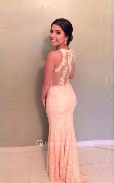Mermaid Long V-neck Illusion Back Zipper Tulle Lace Dress