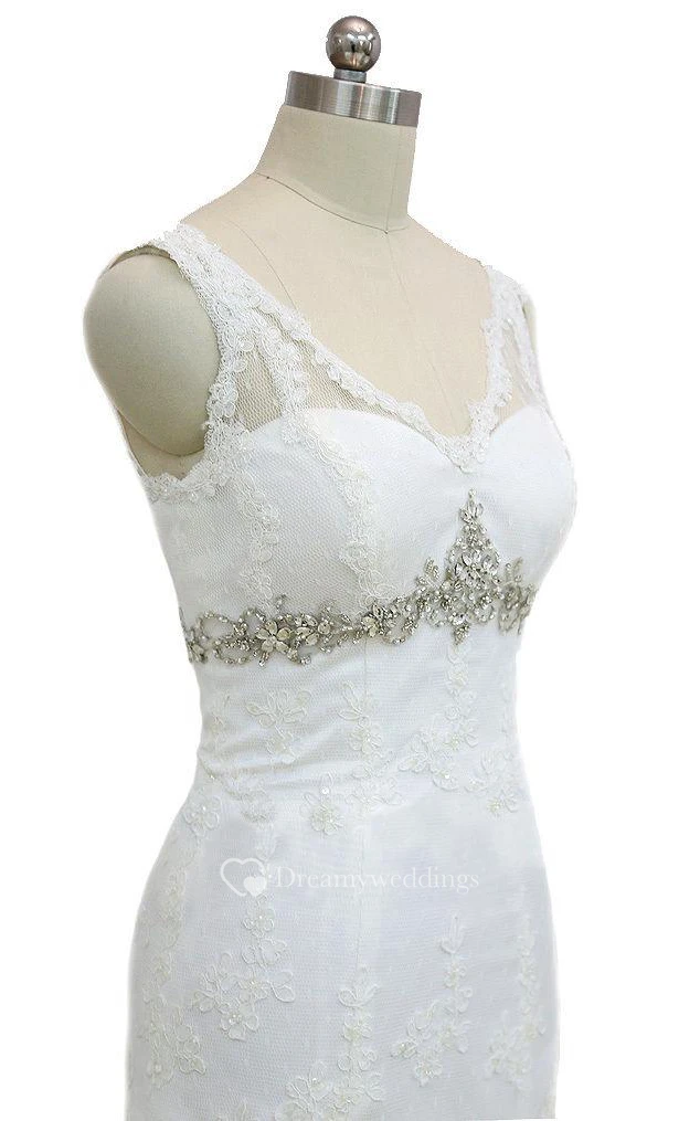 Mermaid Mini Spaghetti Straps V-Neck Beading Appliques Flower Zipper Lace-Up Back Straps Chiffon Tulle Lace Satin Dress