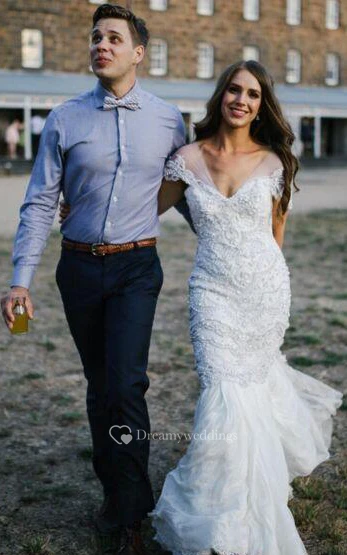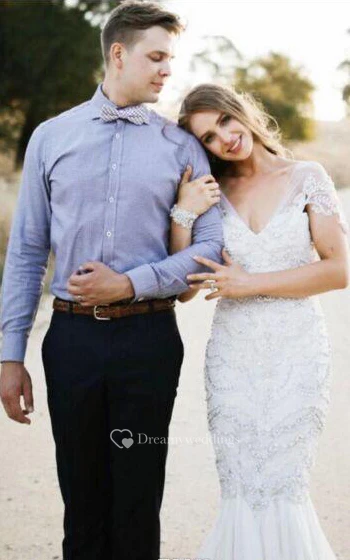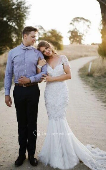 Mermaid Mini Sweetheart Bell Cap Pleats Beading Appliques Tiers Backless Lace Dress