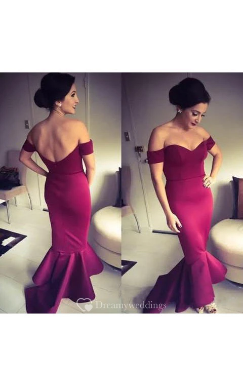 Mermaid Off-the-shoulder Sleeveless Satin Dress with Low V-back