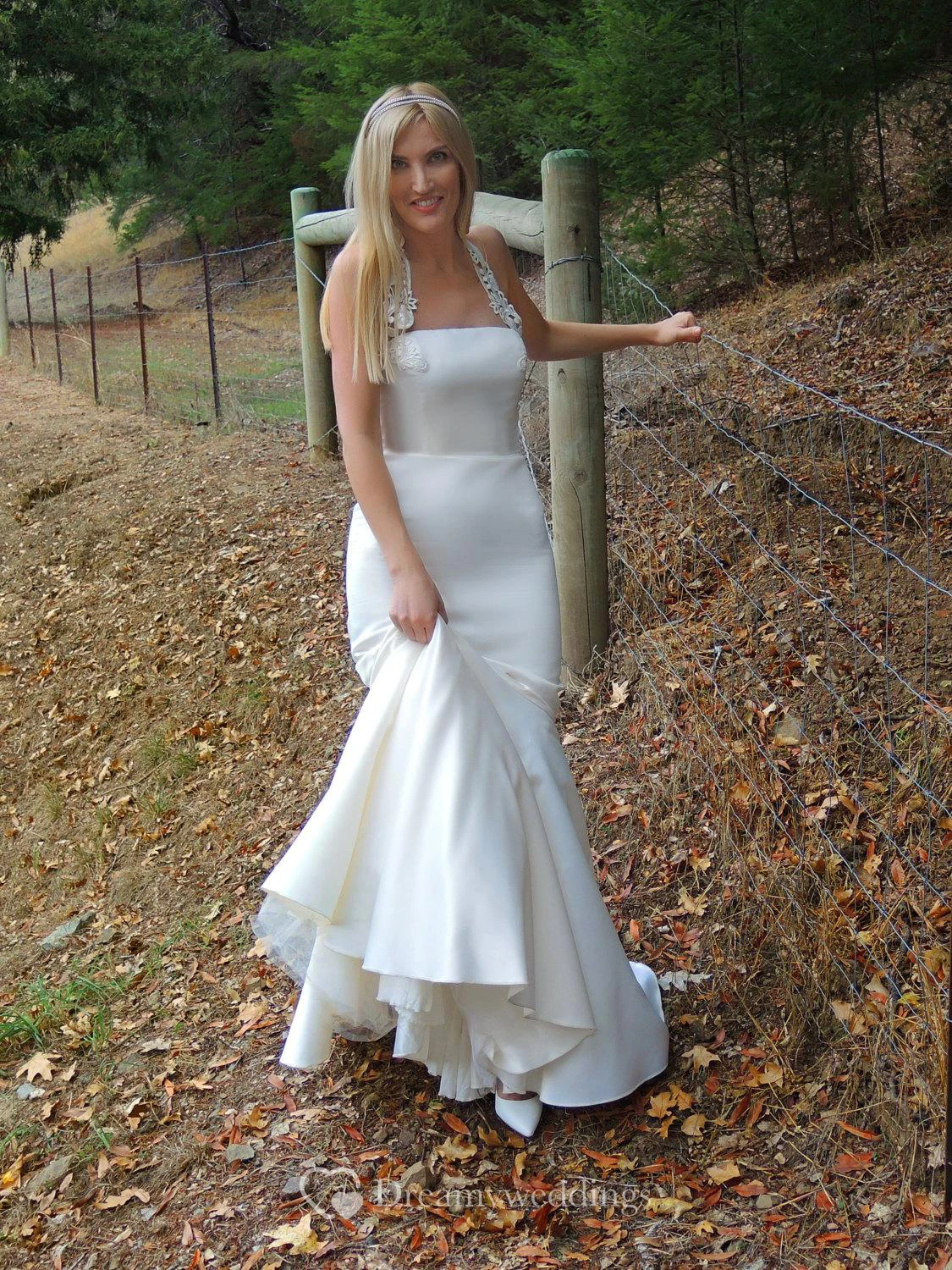 Mermaid Satin Halter Neck Sleeveless Dress With Embroidering