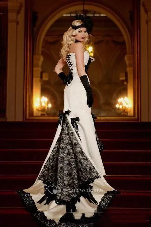 Mermaid Satin Lace Sweetheart Sleeveless Floor-length Court Train Wedding Dress with Bow