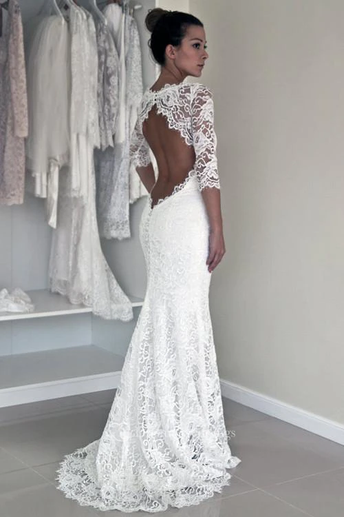 Mermaid Scoop Open Back Long Sleeves Wedding Dresses With Appliques