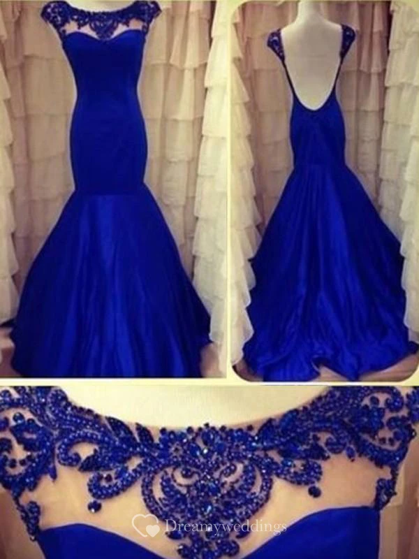 Mermaid Scoop Sleeveless Beading Floor-length Taffeta Dresses