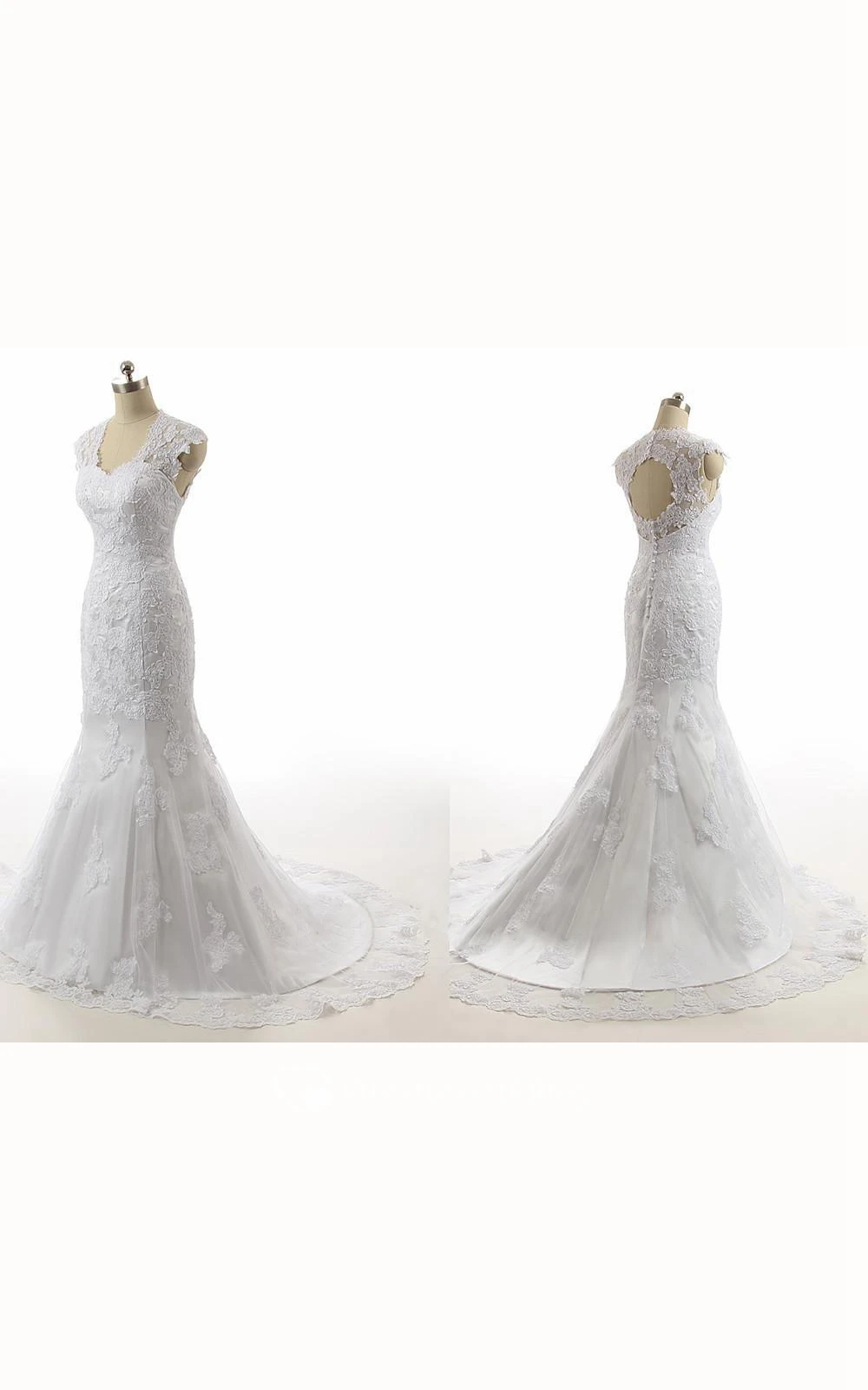 Mermaid Sheath Floor-Length Sleeveless Cap Court Train Zipper Lace Organza Satin Dress