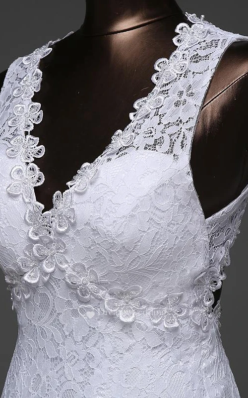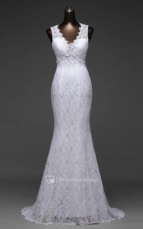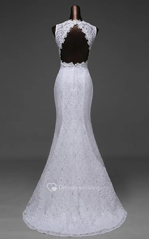 Mermaid Sleeveless Bell Backless Lace-Up Back Lace Dress