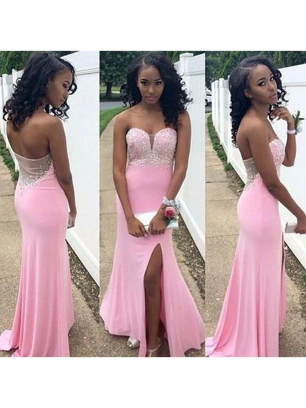 Mermaid Sleeveless Sweetheart Chiffon Beading Sweep Train Dresses