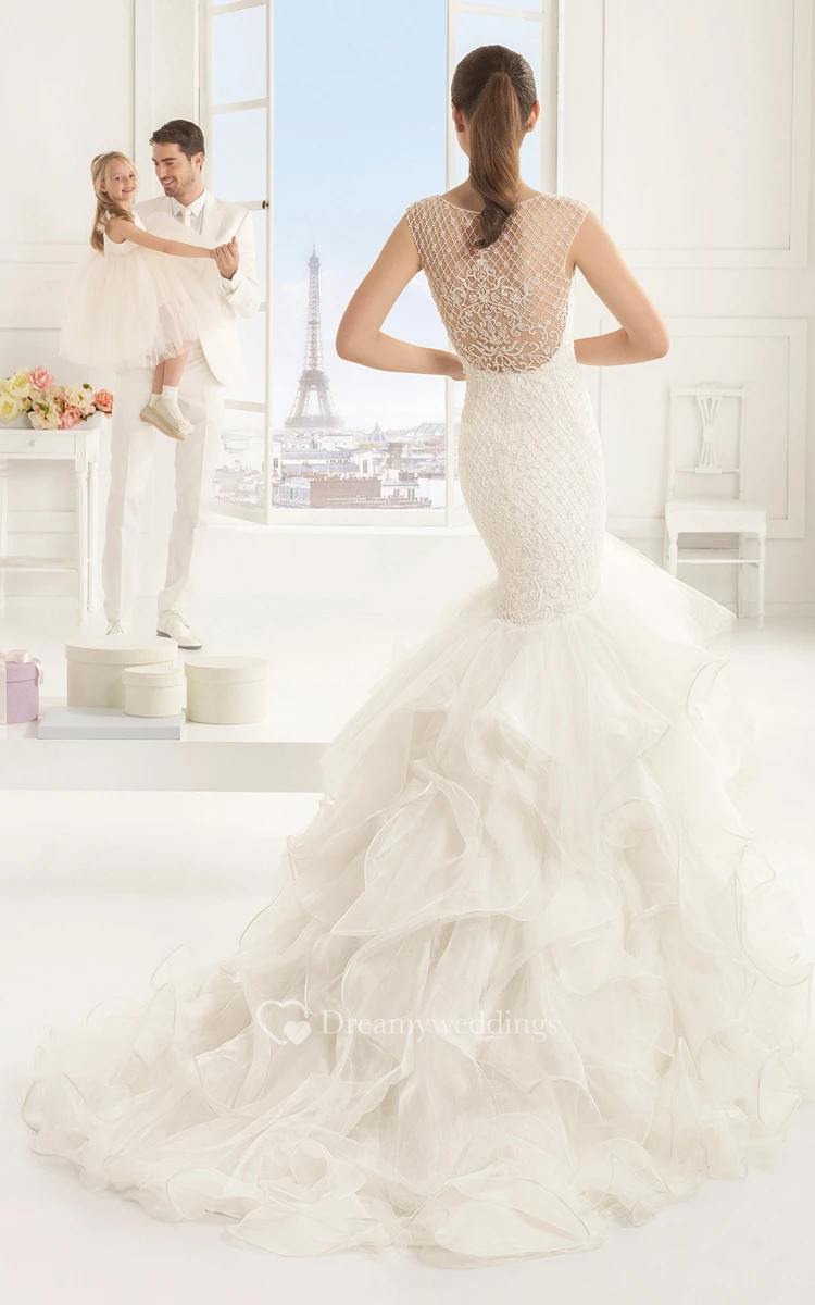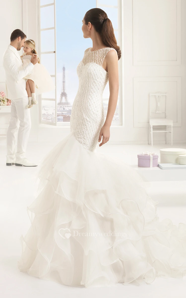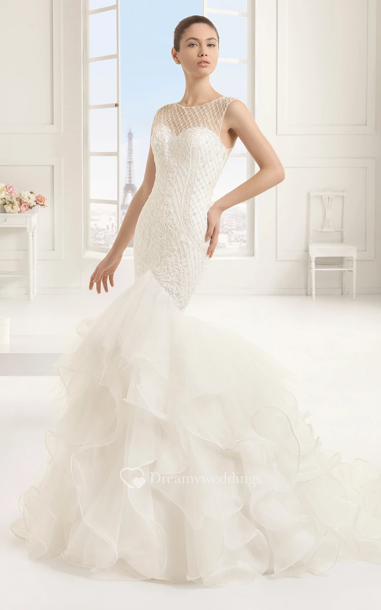 Mermaid Sleeveless Unique Dress With Cascading Ruffles