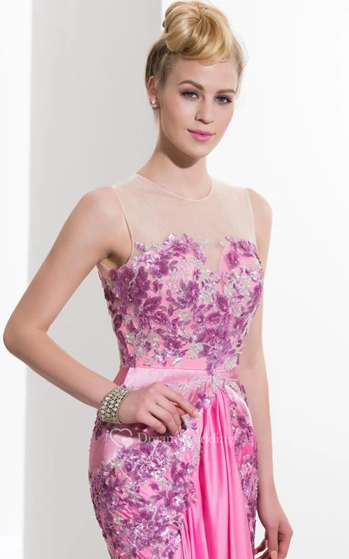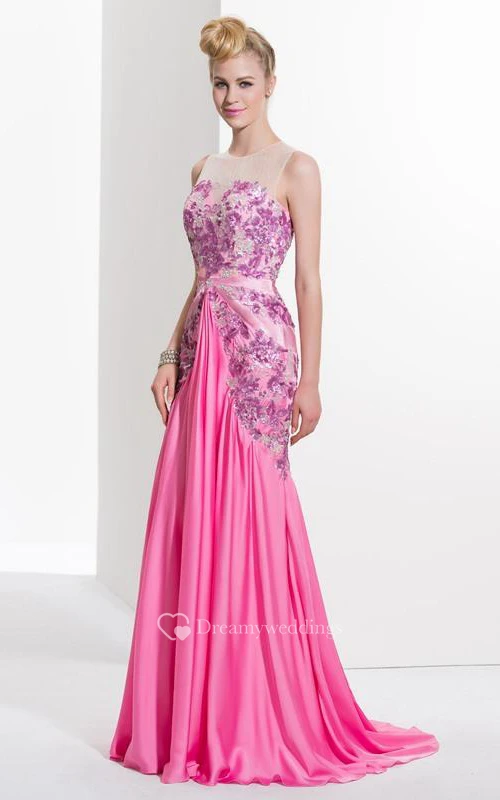 Mermaid Sweetheart Appliques Ruched Sequins Brush Train Prom Dress