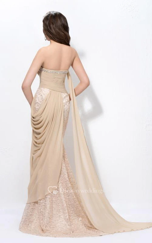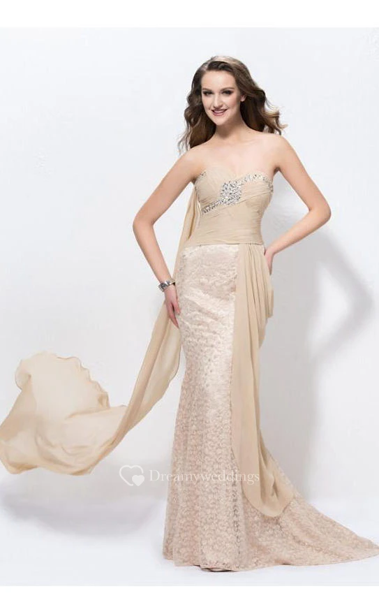 Mermaid Sweetheart Ribbon Beading Floor-Length Sweep-Train Charming Prom Dress