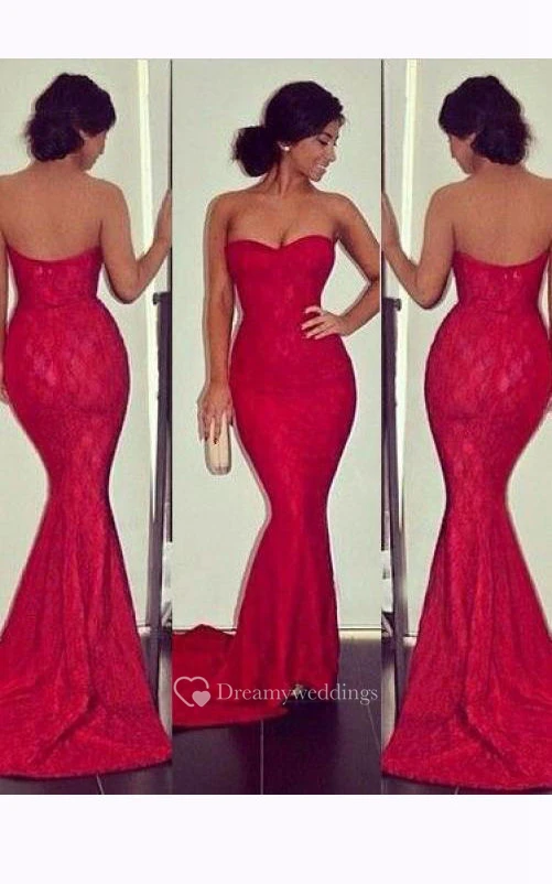 Mermaid Sweetheart Sleeveless Beading Sweep Train Lace Satin Dress