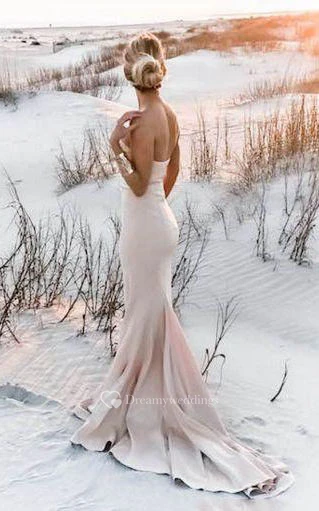 Mermaid Sweetheart Sleeveless Bell Poet Ruffles Sweep Train Backless Jersey Satin Dress
