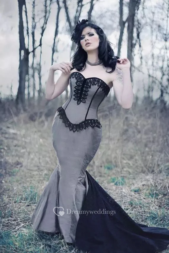 Mermaid Taffeta Lace Sweetheart Sleeveless Floor-length Sweep Train Wedding Dress with Appliques