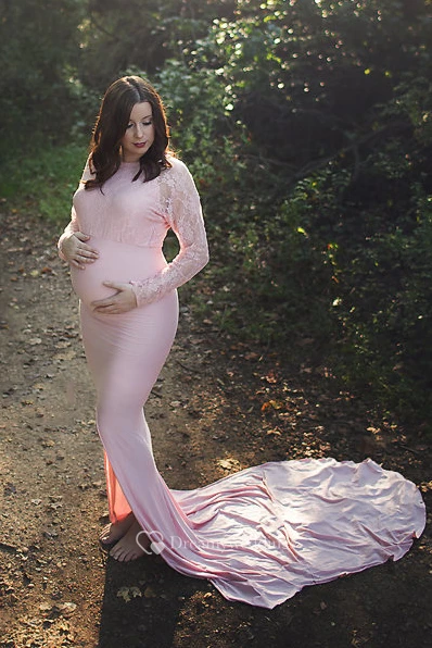 Mermaid Trumpet Illusion Long Sleeve Empire Maternity Dress