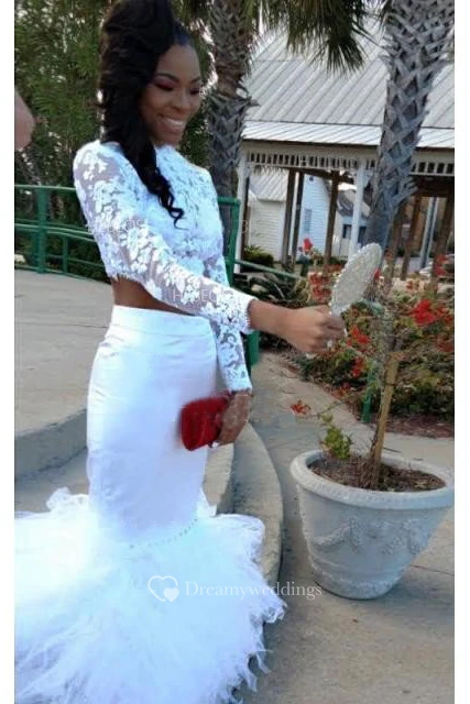 Mermaid Trumpet Lace Tulle High Neck Long Sleeve Low-V Back Dress