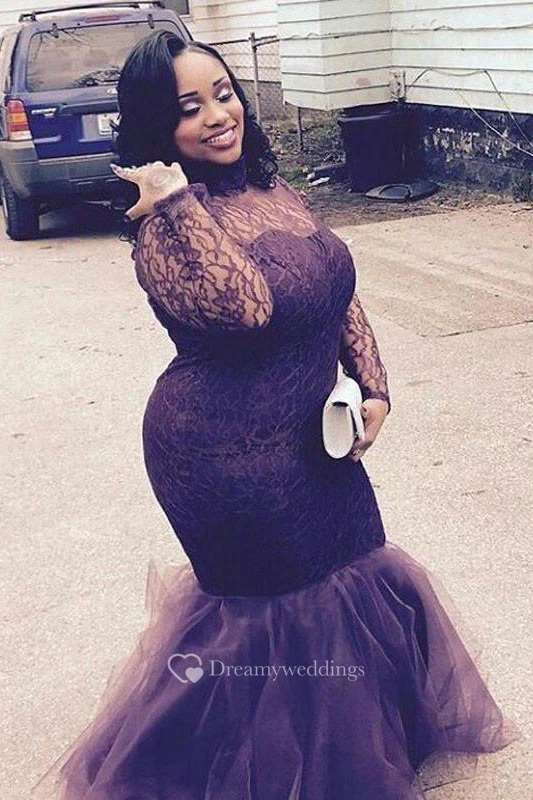 Mermaid Trumpet Lace Tulle High Neck Long Sleeve Zipper Dress