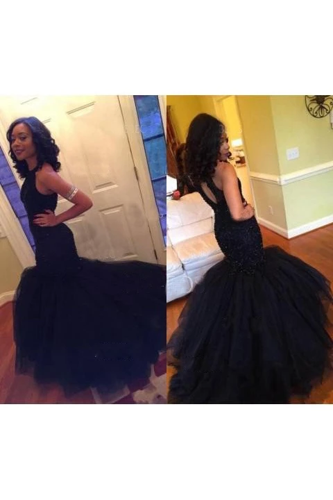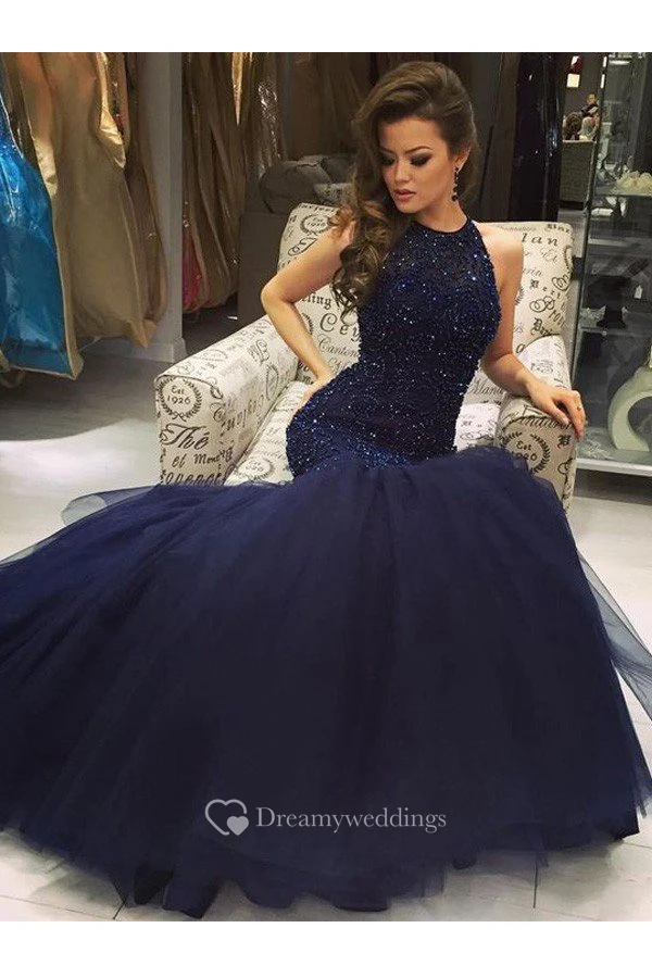 Mermaid Trumpet Lace Tulle High Neck Sleeveless Keyhole Dress