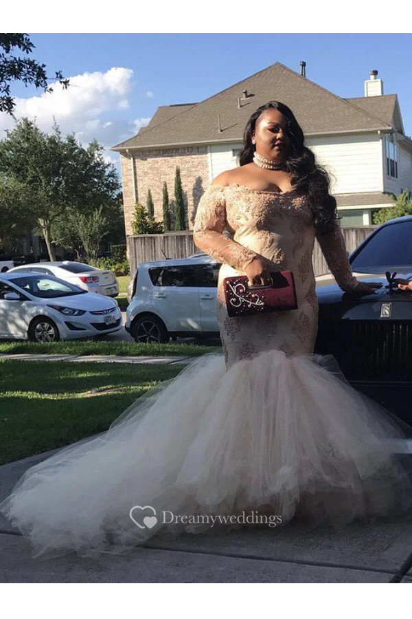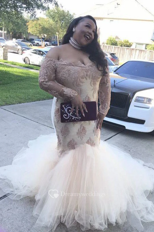 Mermaid Trumpet Lace Tulle Off-the-shoulder Long Sleeve Zipper Dress