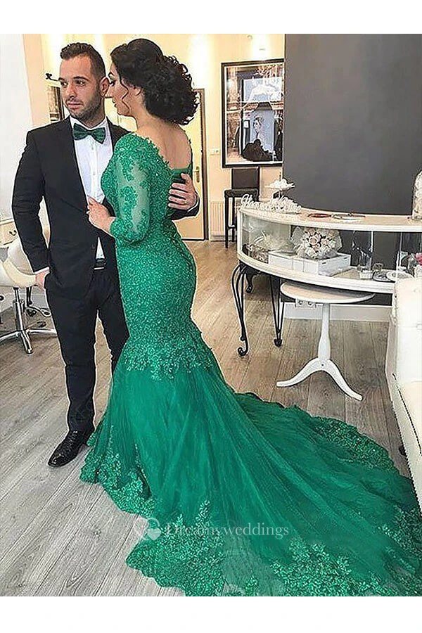 Mermaid Trumpet Lace Tulle V-neck 3 4 Length Sleeve Zipper Dress