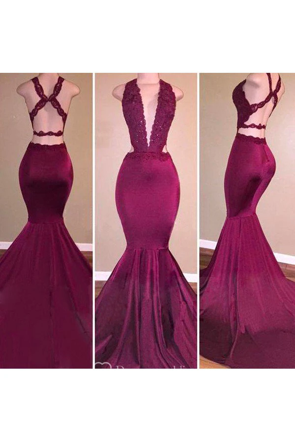 Mermaid Trumpet Satin Lace Halter Sleeveless Open Back Straps Dress