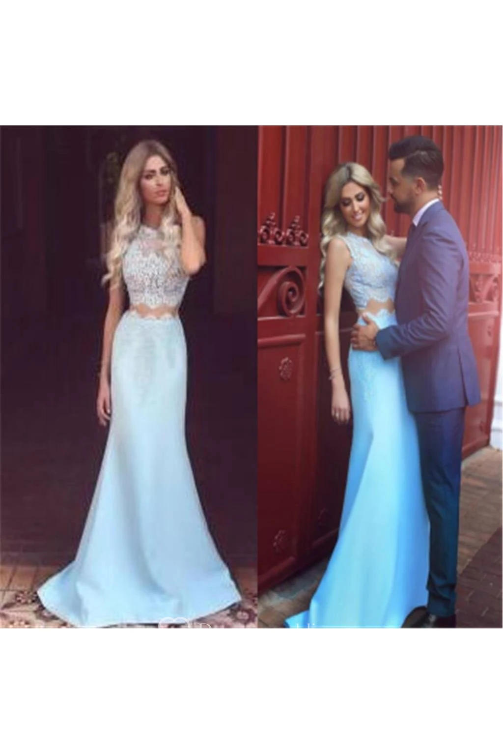 Mermaid Trumpet Satin Lace Jewel Sleeveless Zipper Illusion Dress