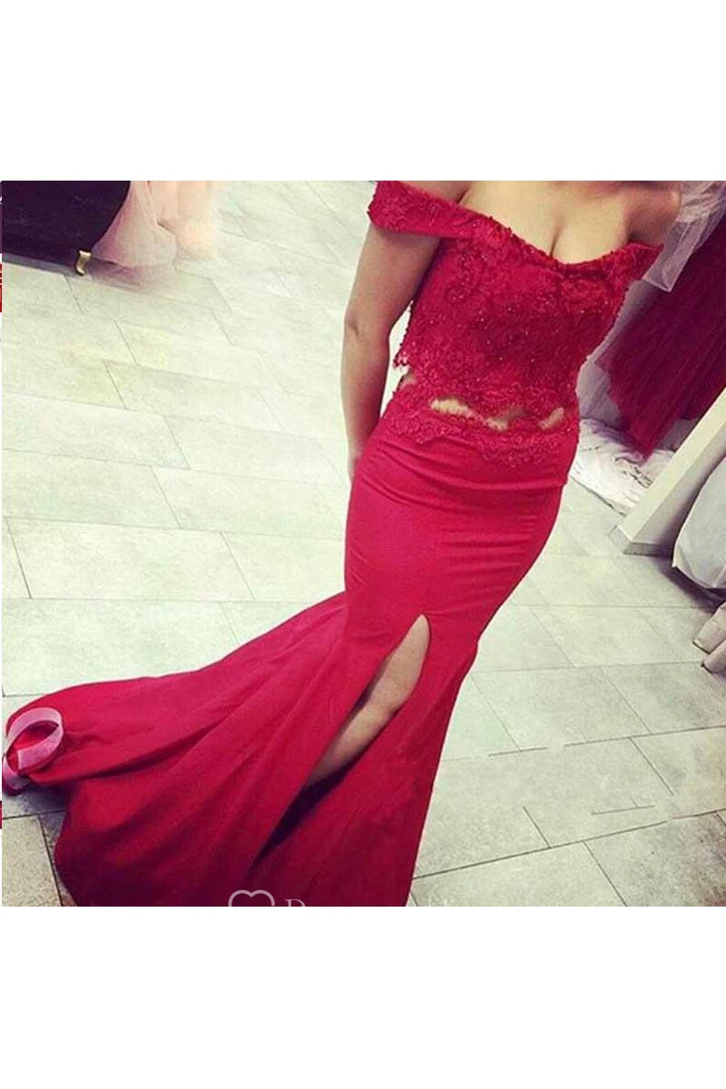 Mermaid Trumpet Satin Lace Off-the-shoulder Short Sleeve Zipper Dress