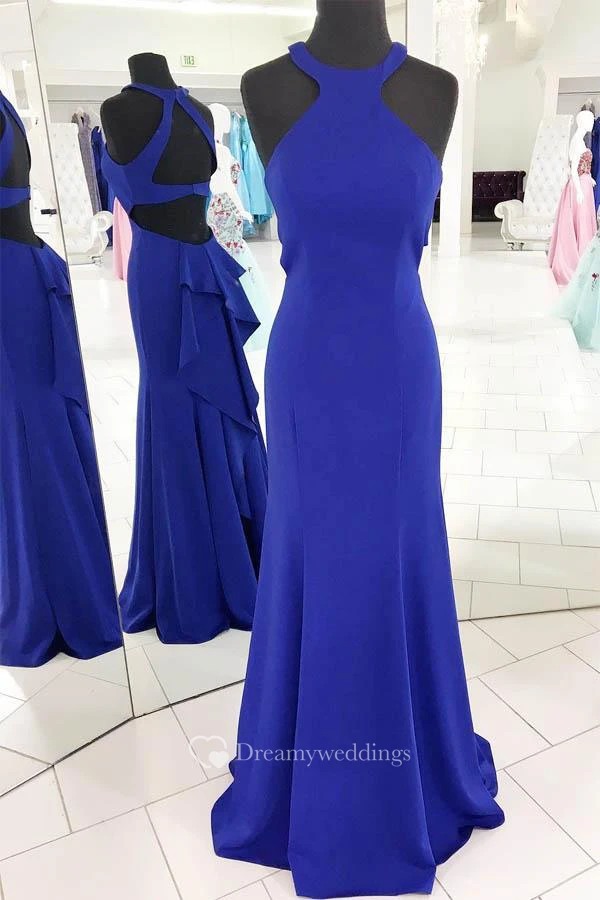 Mermaid Trumpet Sheath Satin Halter Sleeveless Zipper Keyhole Dress