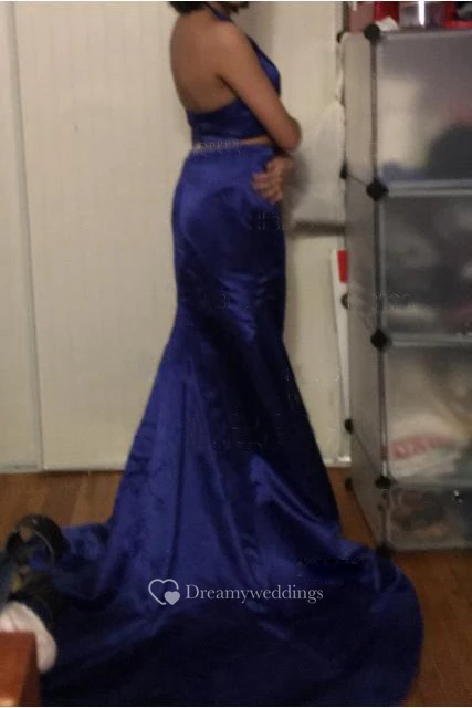Mermaid Trumpet Two Piece Satin Halter Sleeveless Zipper Dress