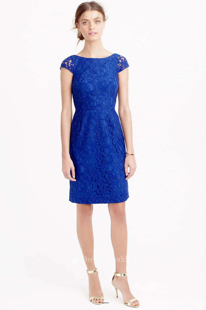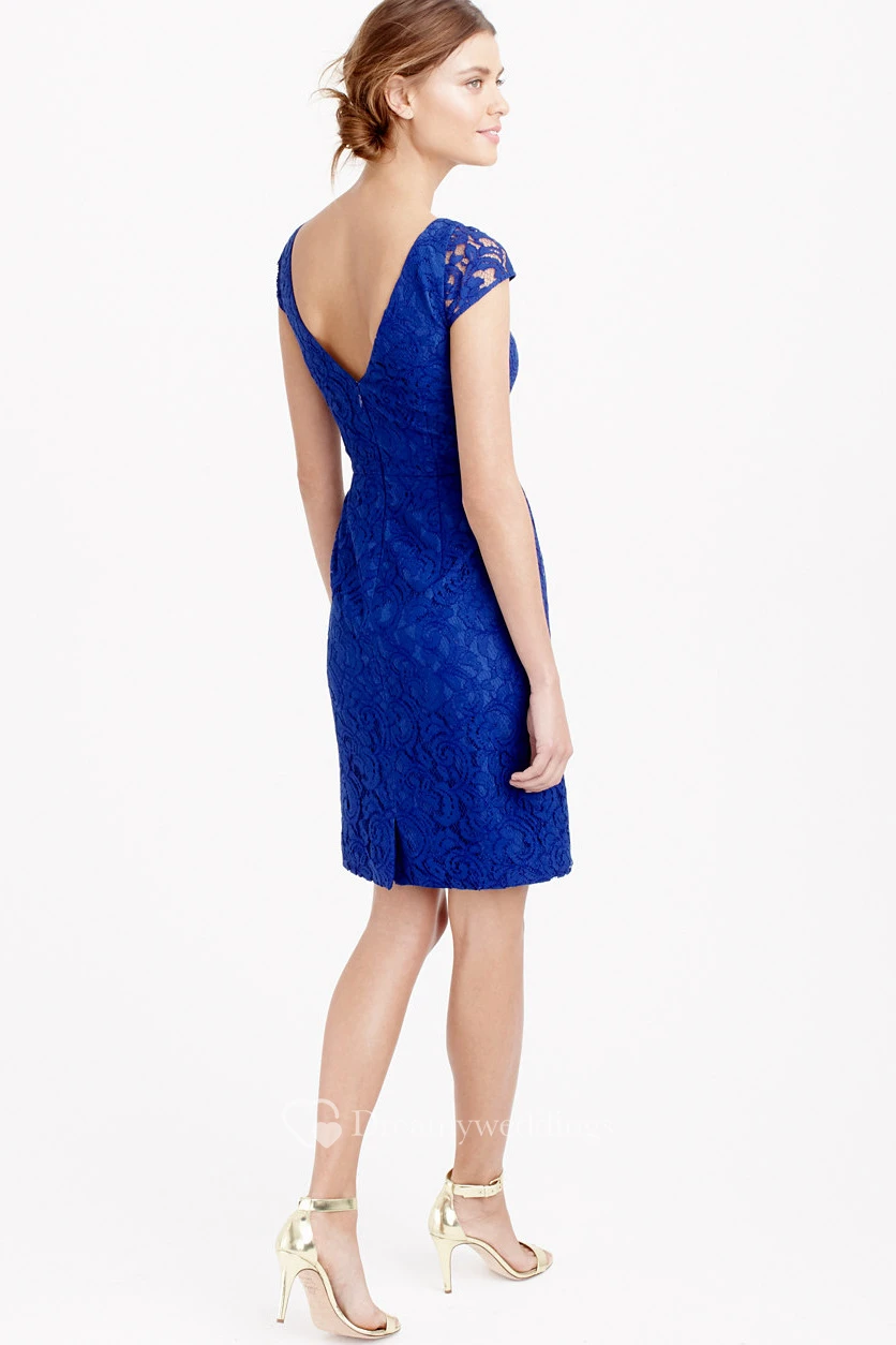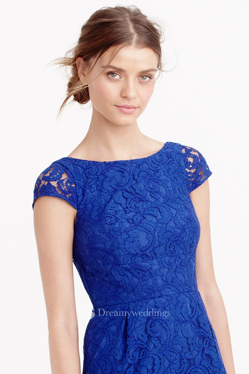 Mini Appliqued Cap Sleeve Bateau Neck Lace Bridesmaid Dress With Low-V Back