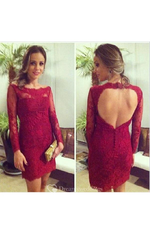 Mini Sheath Lace Dress with Keyhole Back