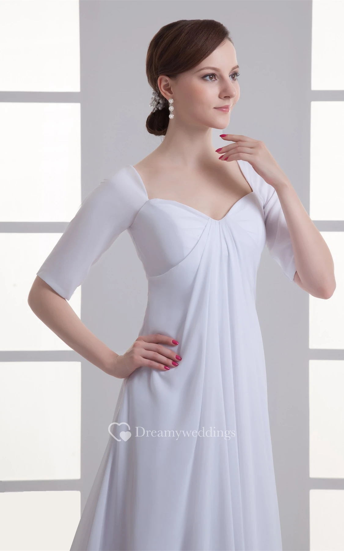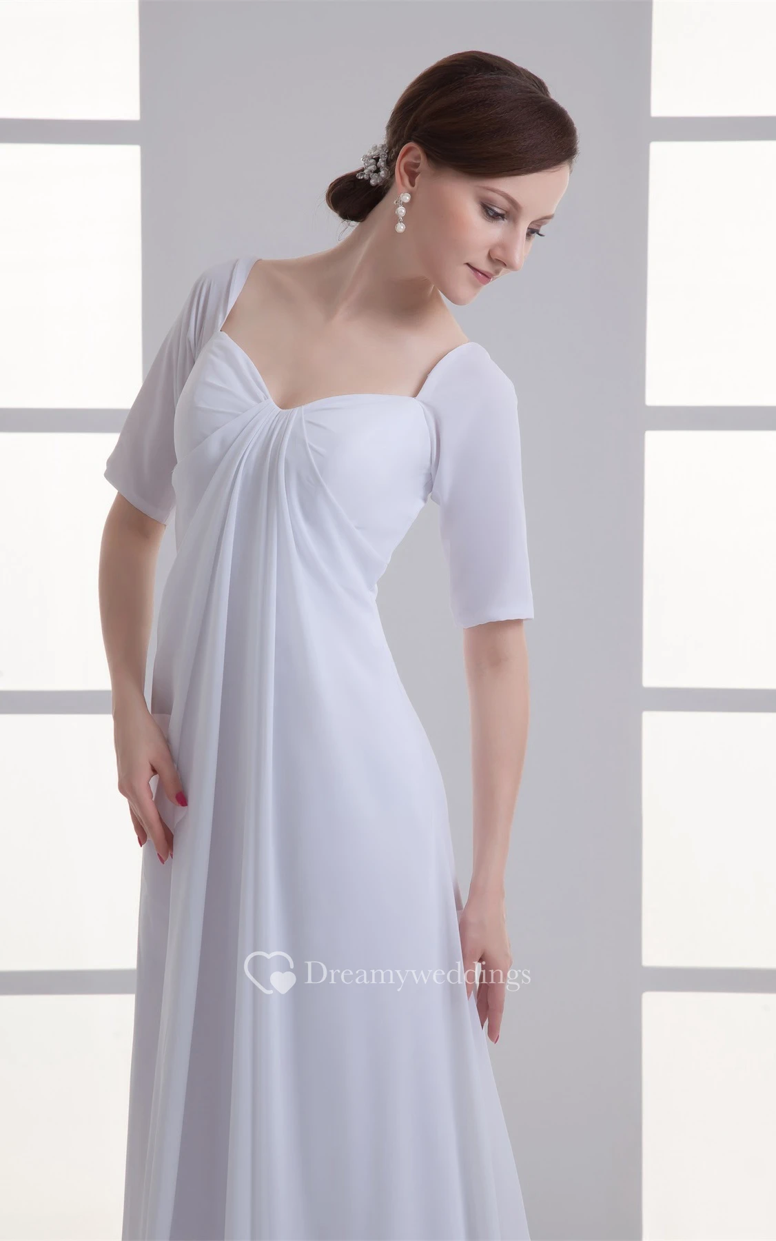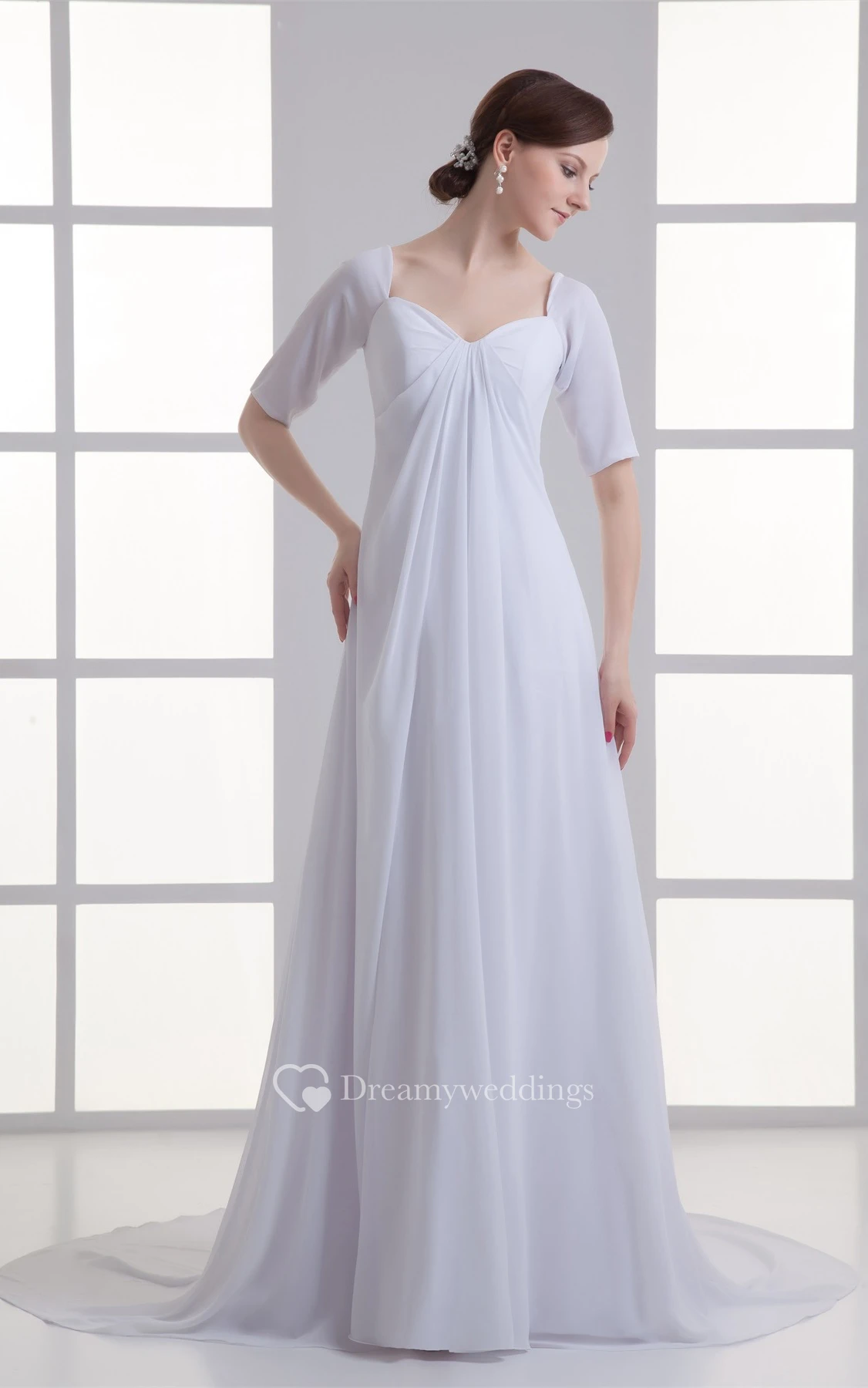 Mini-Sleeve Chiffon Floor-Length Empire Brush Train and Dress With Draping
