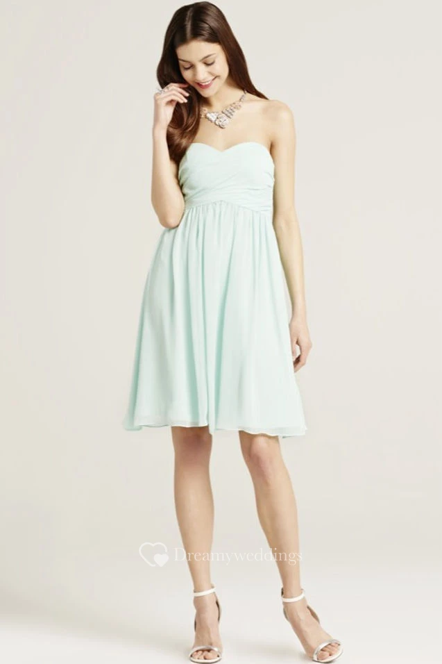Mini Sweetheart Sleeveless Ruched Chiffon Bridesmaid Dress With Bow