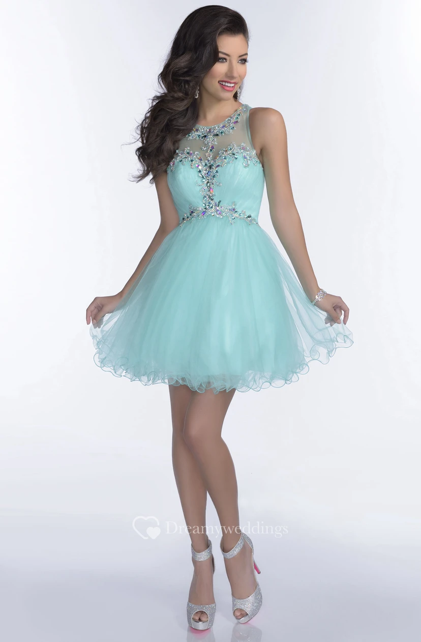 Mini Tulle A-Line Sleeveless Prom Dress With Crystal Detailing