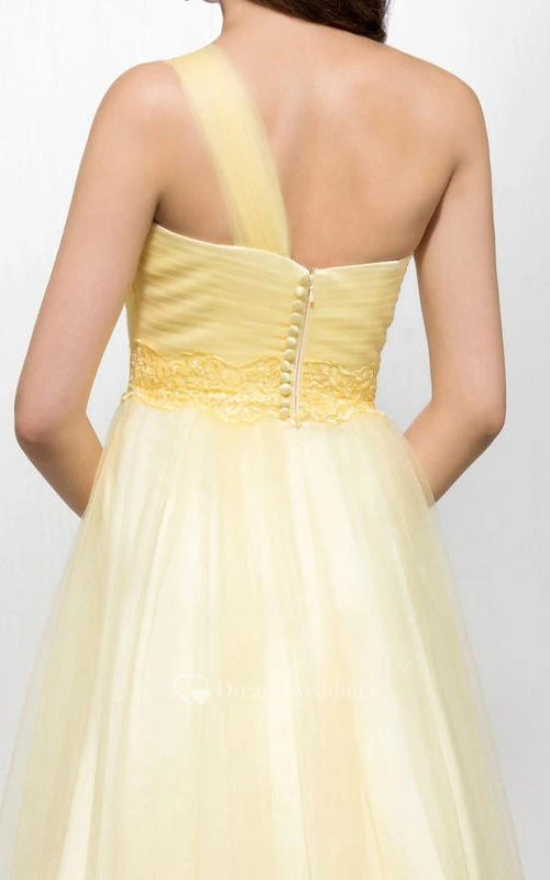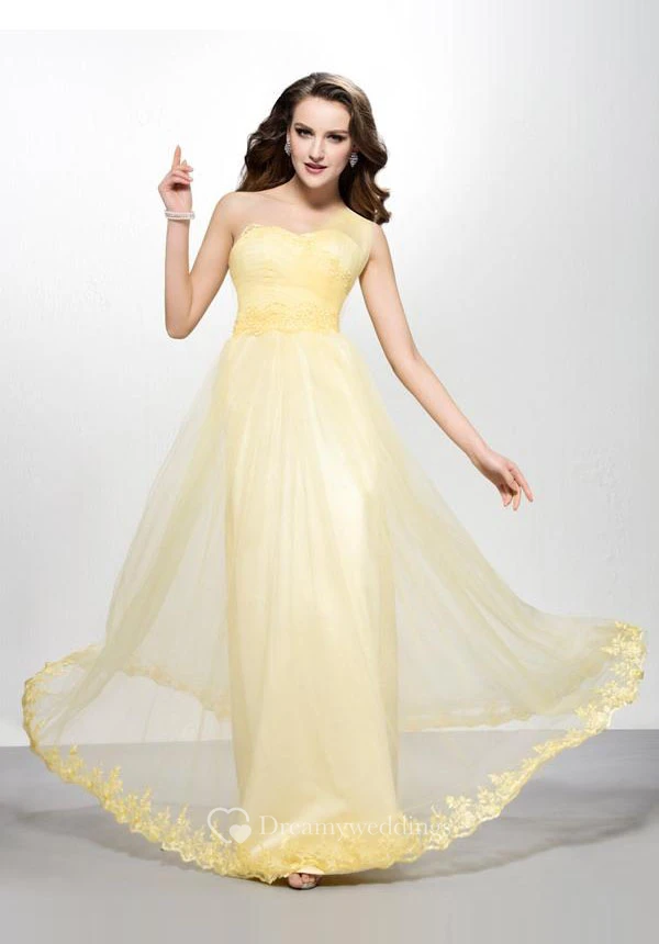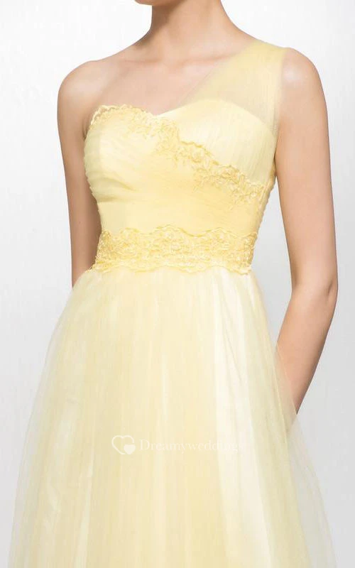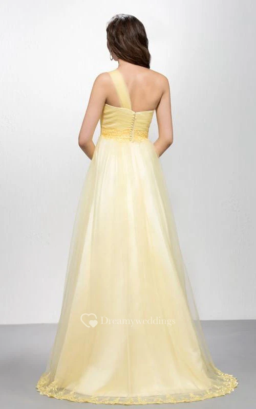 Modern A-line Floor-length One-shoulder Appiques Zipper-up Prom Dress