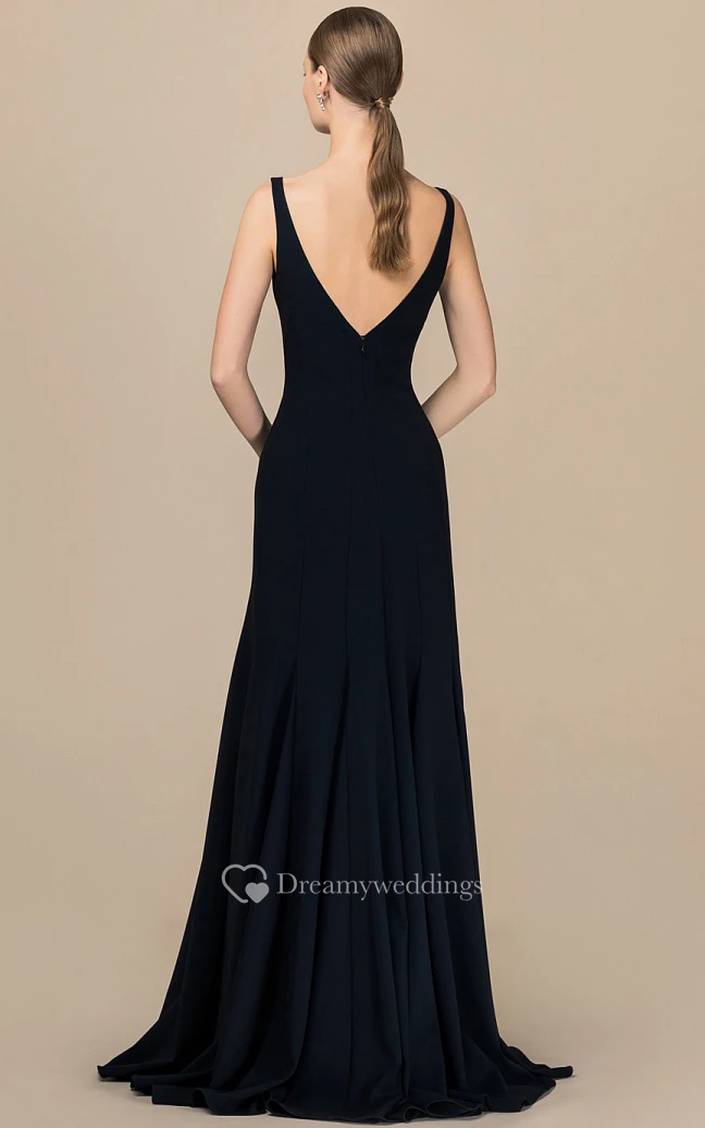 Modern A Line Satin V-neck Floor-length Backless Prom Dress