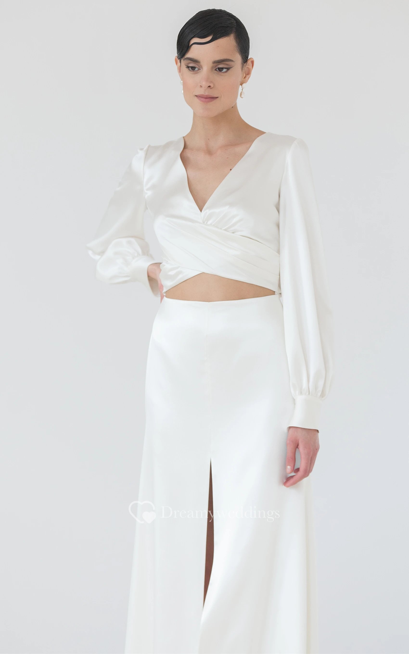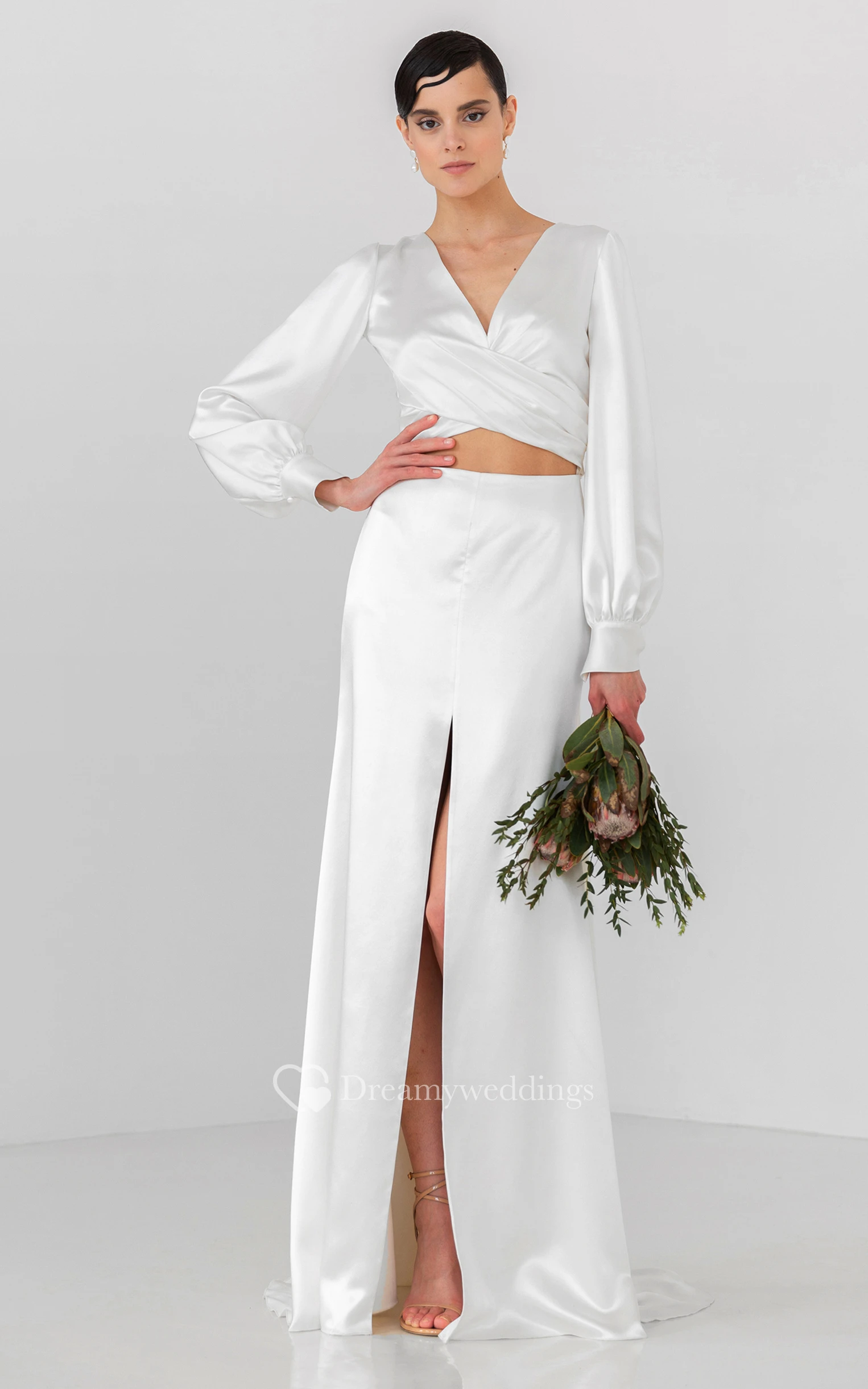 Modern A Line Satin V-neck Wedding Dress with Split Front