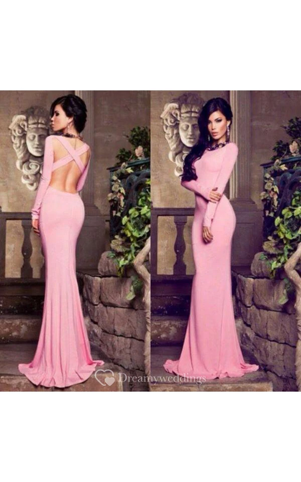 Modern Bateau Long Sleeve Mermaid Prom Dress Floor-length Cross Crisis Back