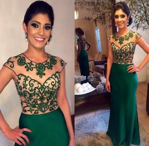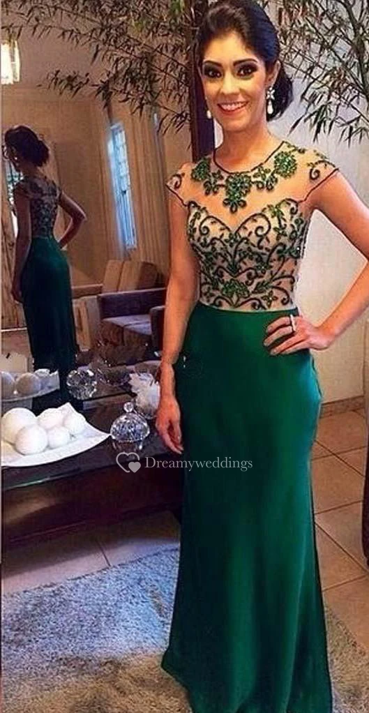 Modern Beadings Mermaid Green Evening Dress Cap Sleeve Floor-length