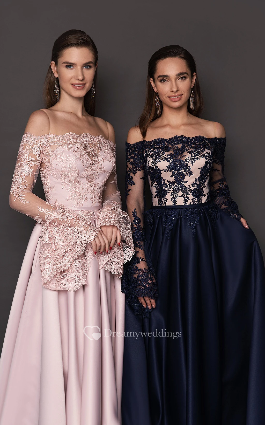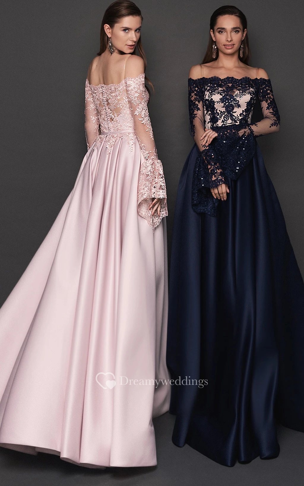 Modern Floor-length Long Sleeve Satin A Line Button Prom Dress with Ruching