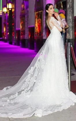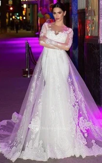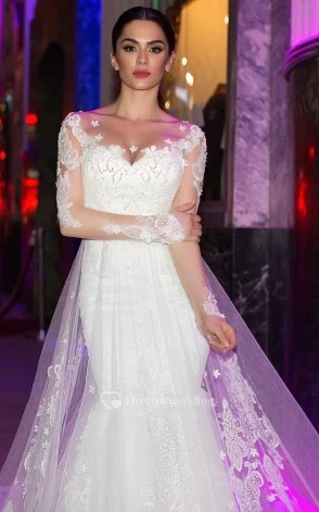 Modern Illusion Bateau A Line Lace Floor-length Long Sleeve Wedding Dress with Appliques