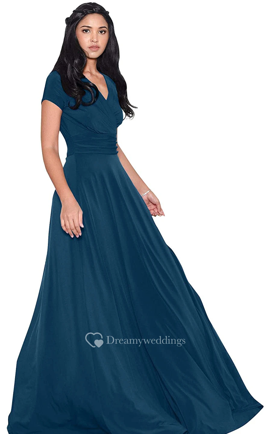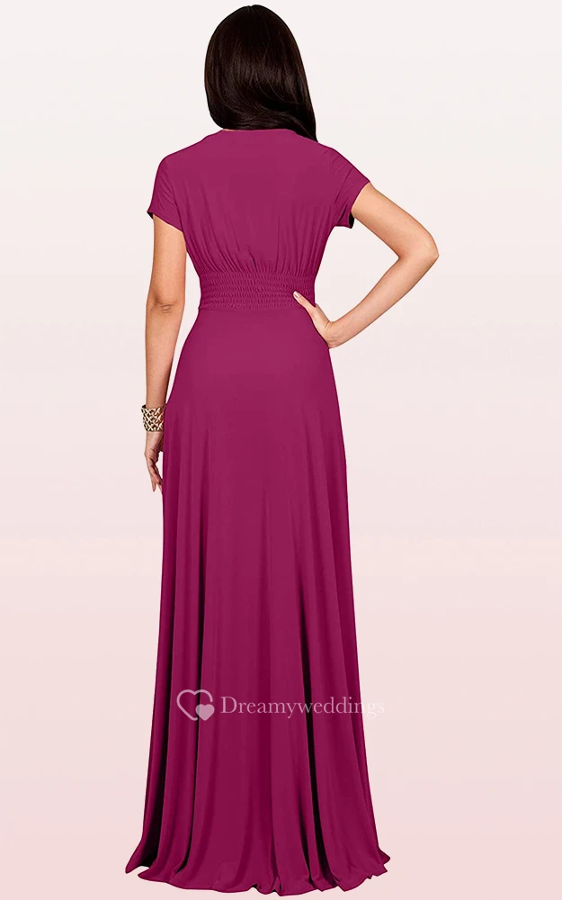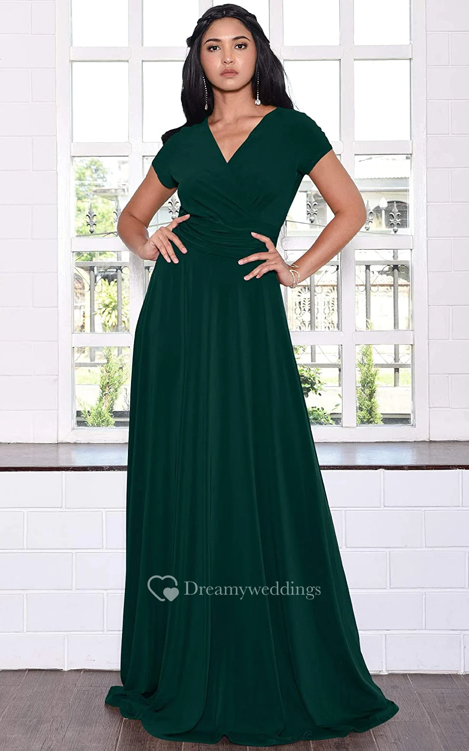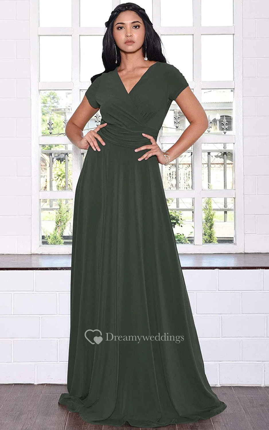 Modern Jersey V-neck Short Sleeve Mother Dress With Criss Cross and Pleats