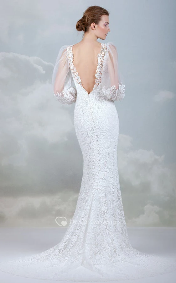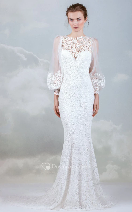 Modern Lace Bateau Long Sleeve Wedding Dress With Low-V Back