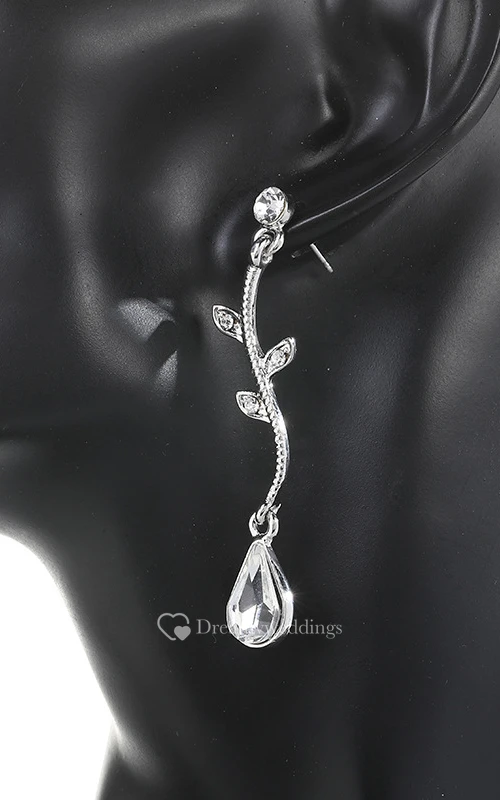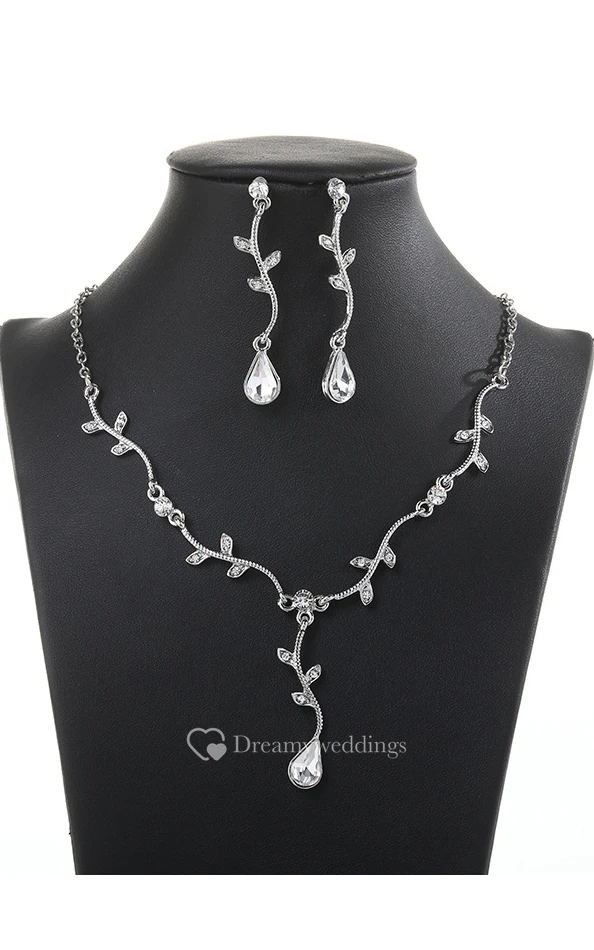 Modern Leaves and Pear Shape Rhinestone Necklace and Earrings Jewelry Set