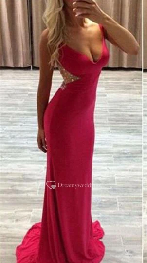 Modern Red Crystals Mermaid Prom Dress Sweep Train Zipper