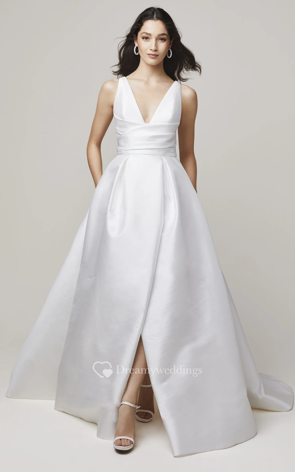 Modern Satin A Line V-neck Bridal Gown with Split Front
