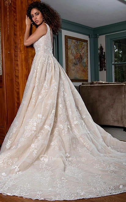 Modern Square A Line Lace Floor-length Sleeveless Wedding Dress with Appliques