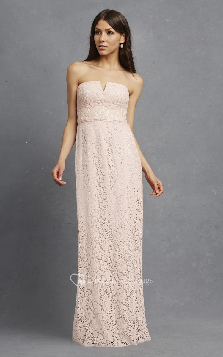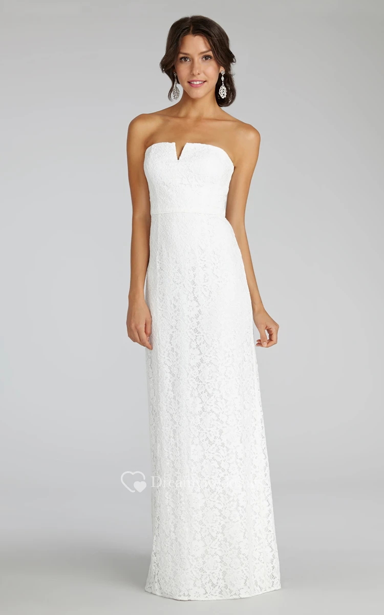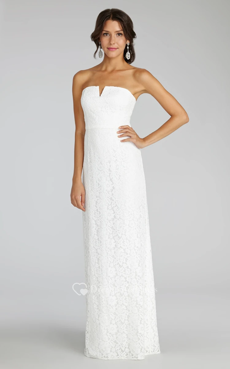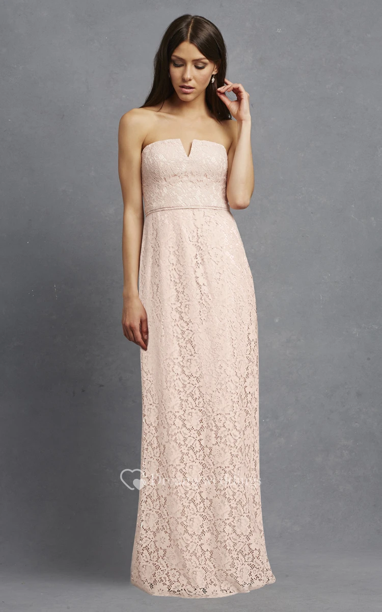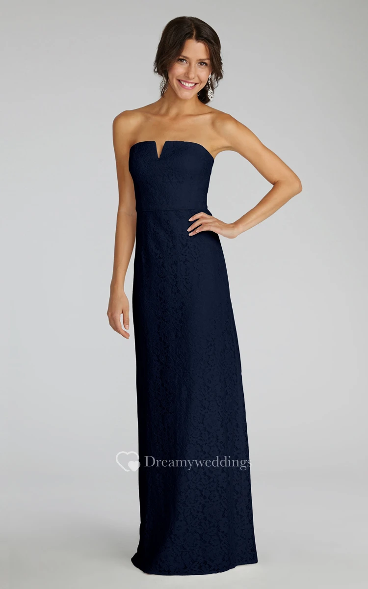 Modern Strapless Floor-length Lace Dress with Notched Neckline