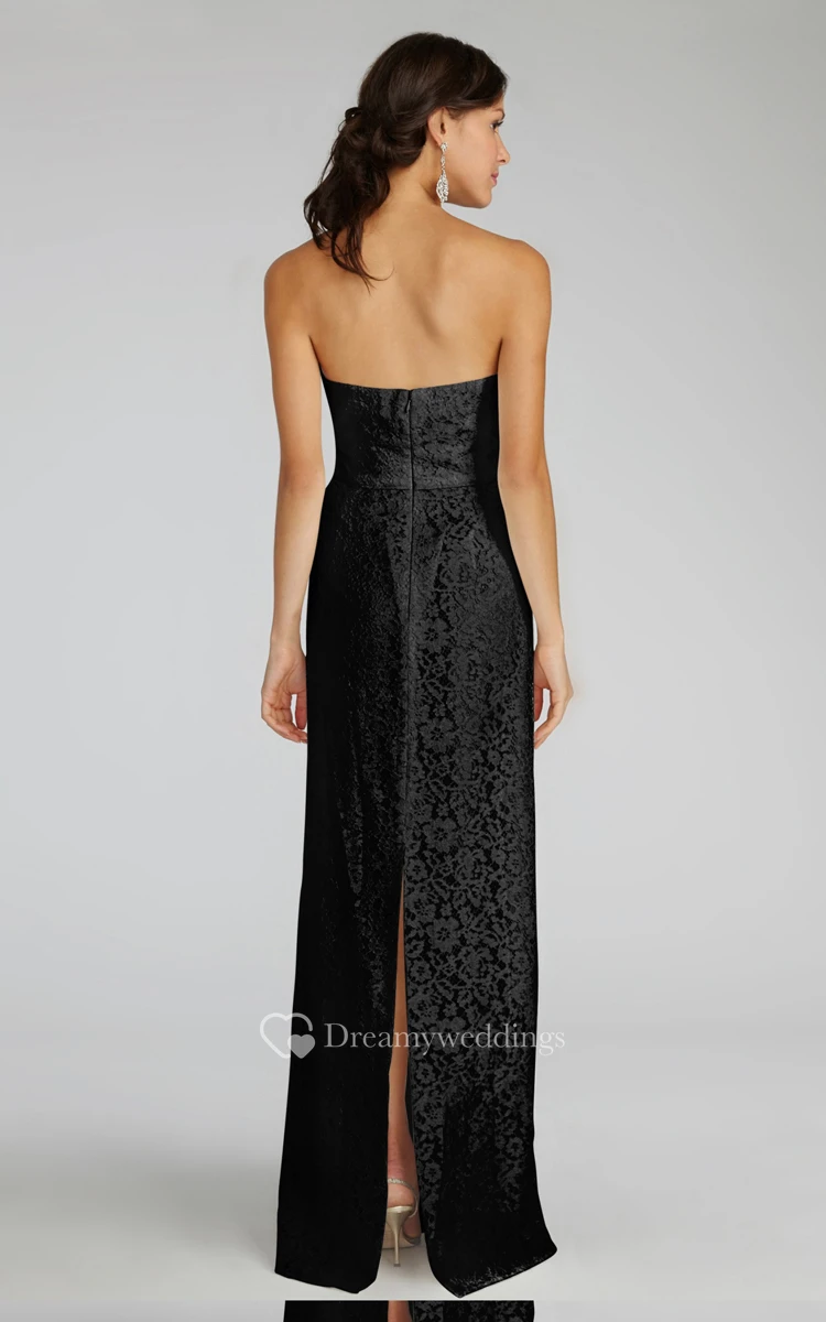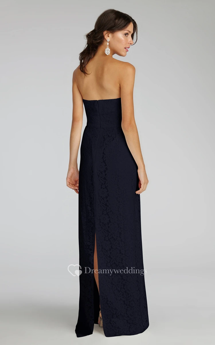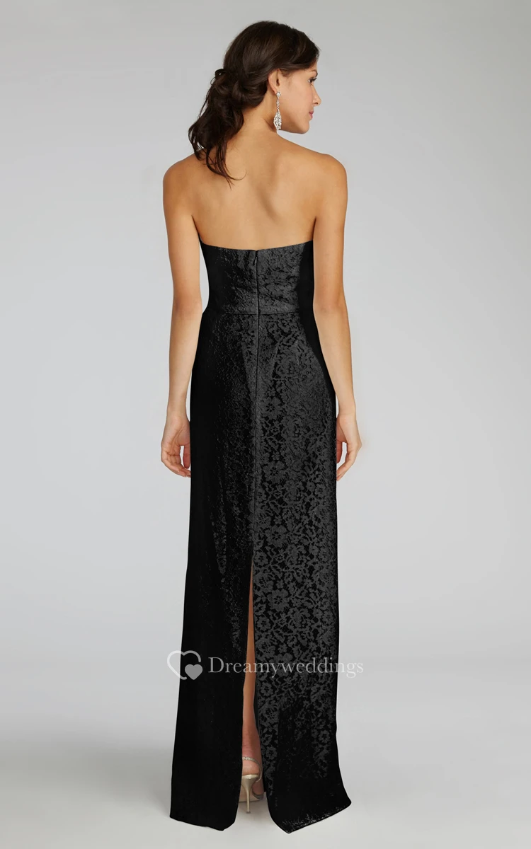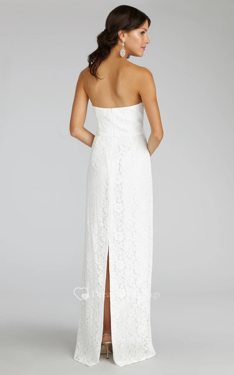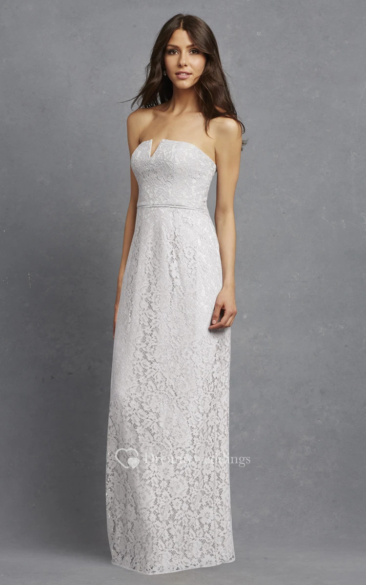 Modern Strapless Floor-length Lace Dress with Notched Neckline